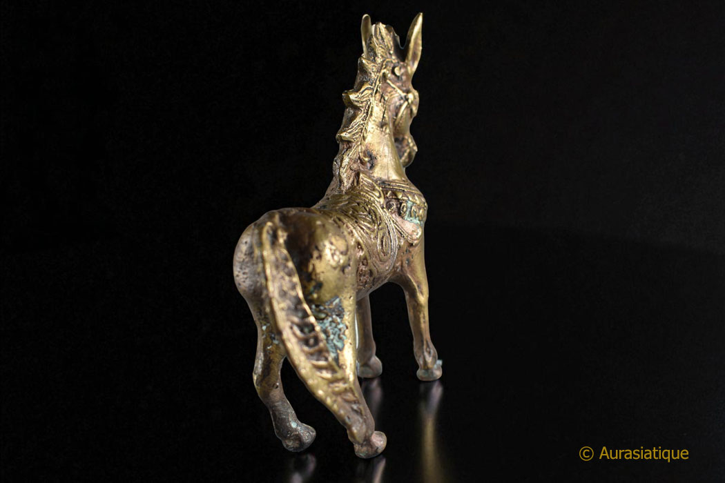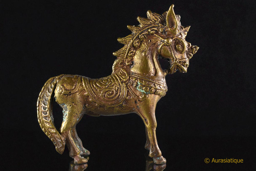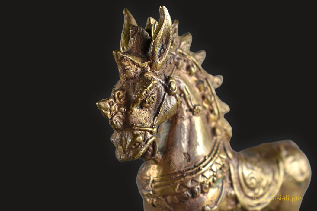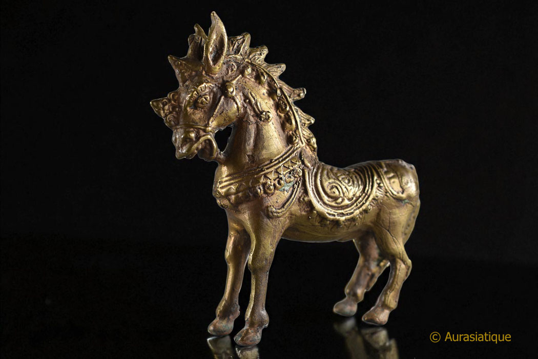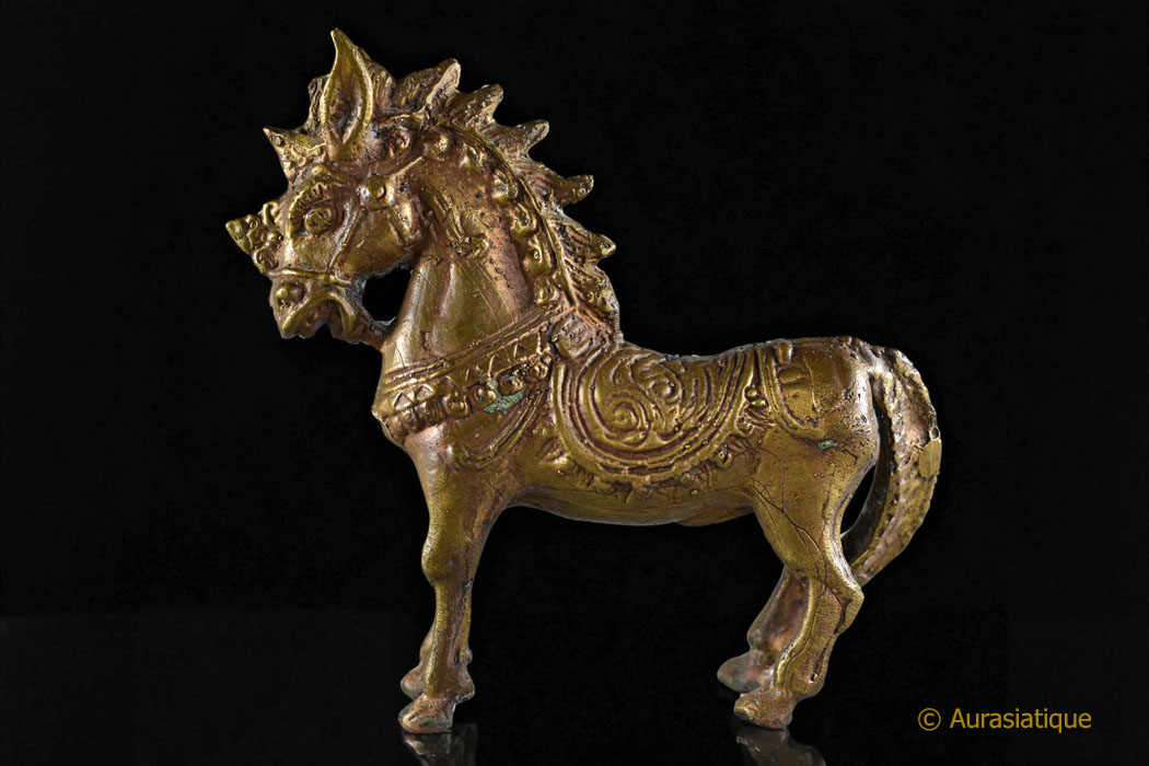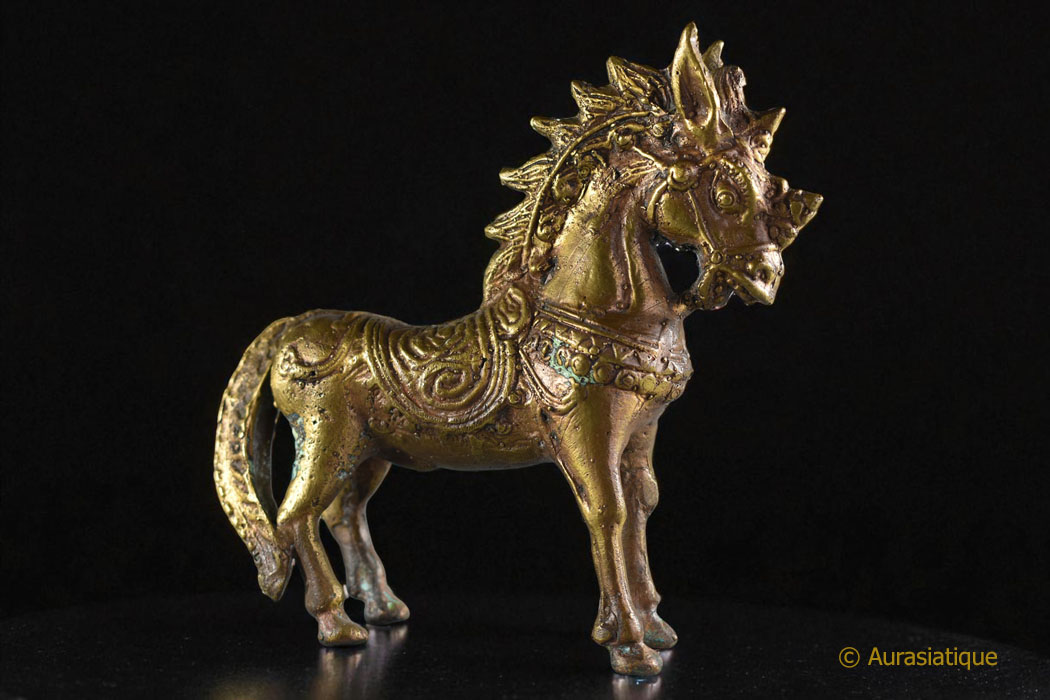 Statuette ancienne et rarissime d’un petit cheval étalon « du vent » du Tibet (lungta) Créature mythique, tant allégorie de l’âme humaine que du courage transcendant le doute.
